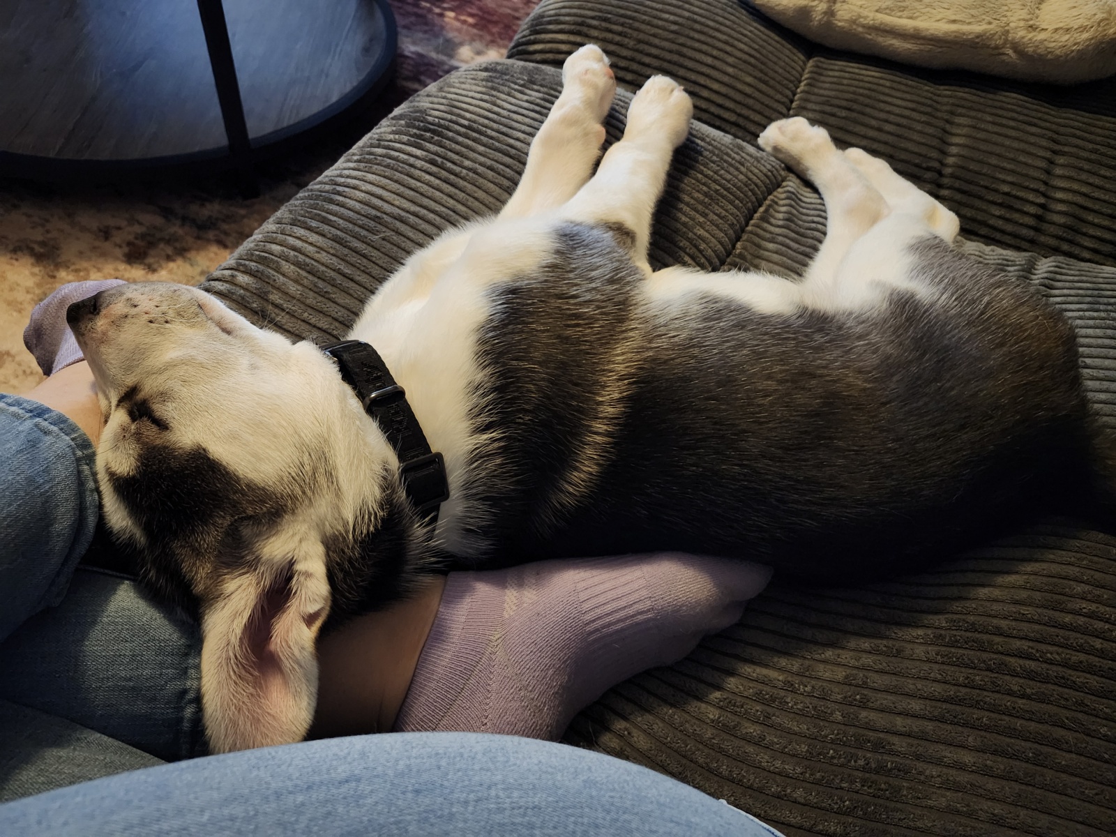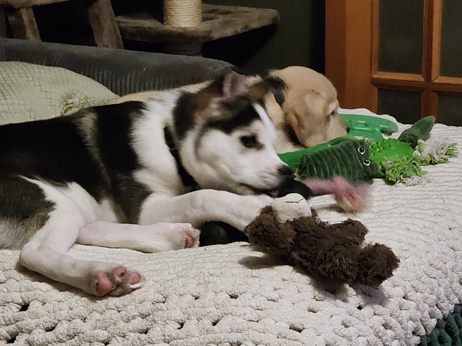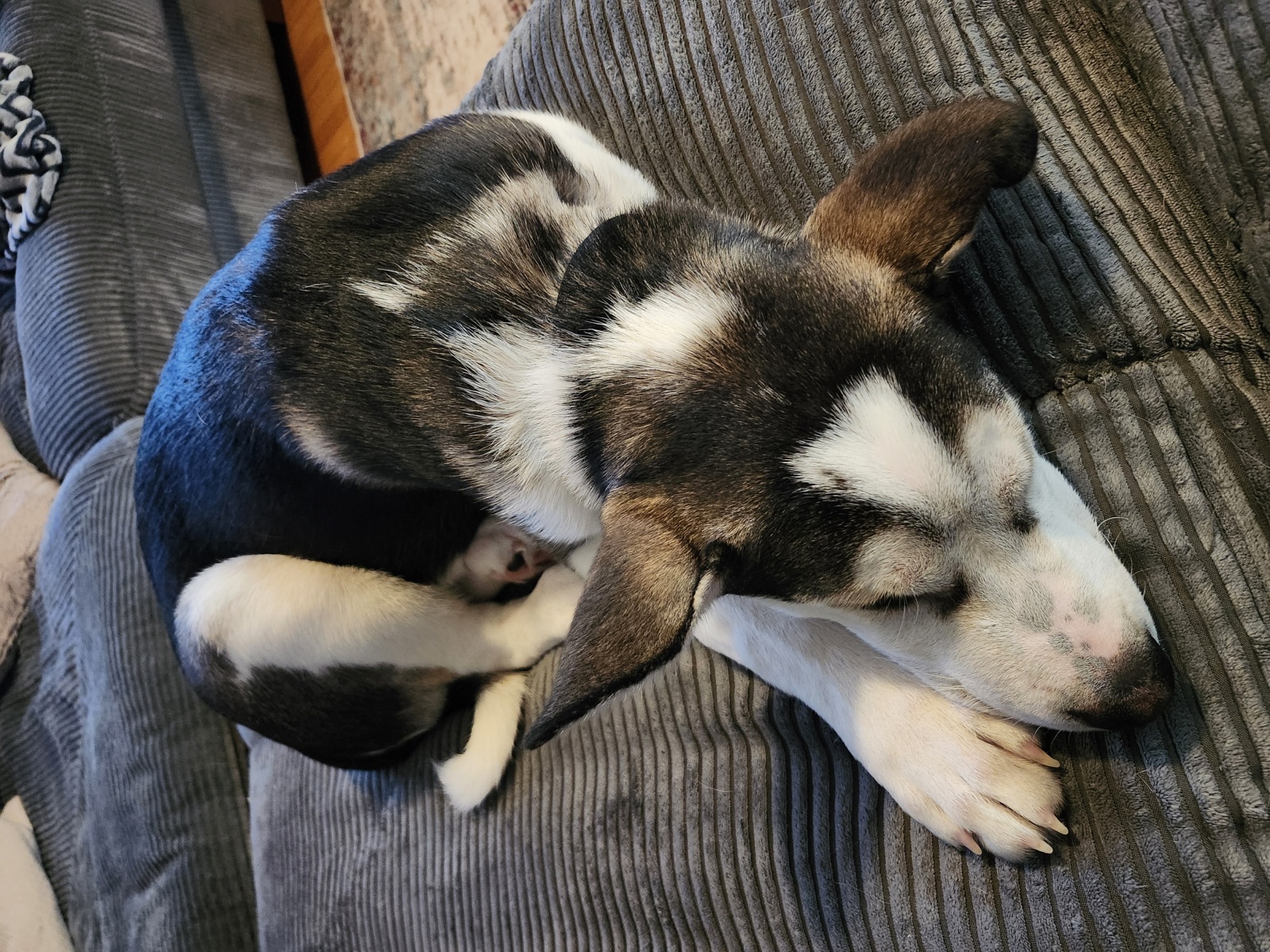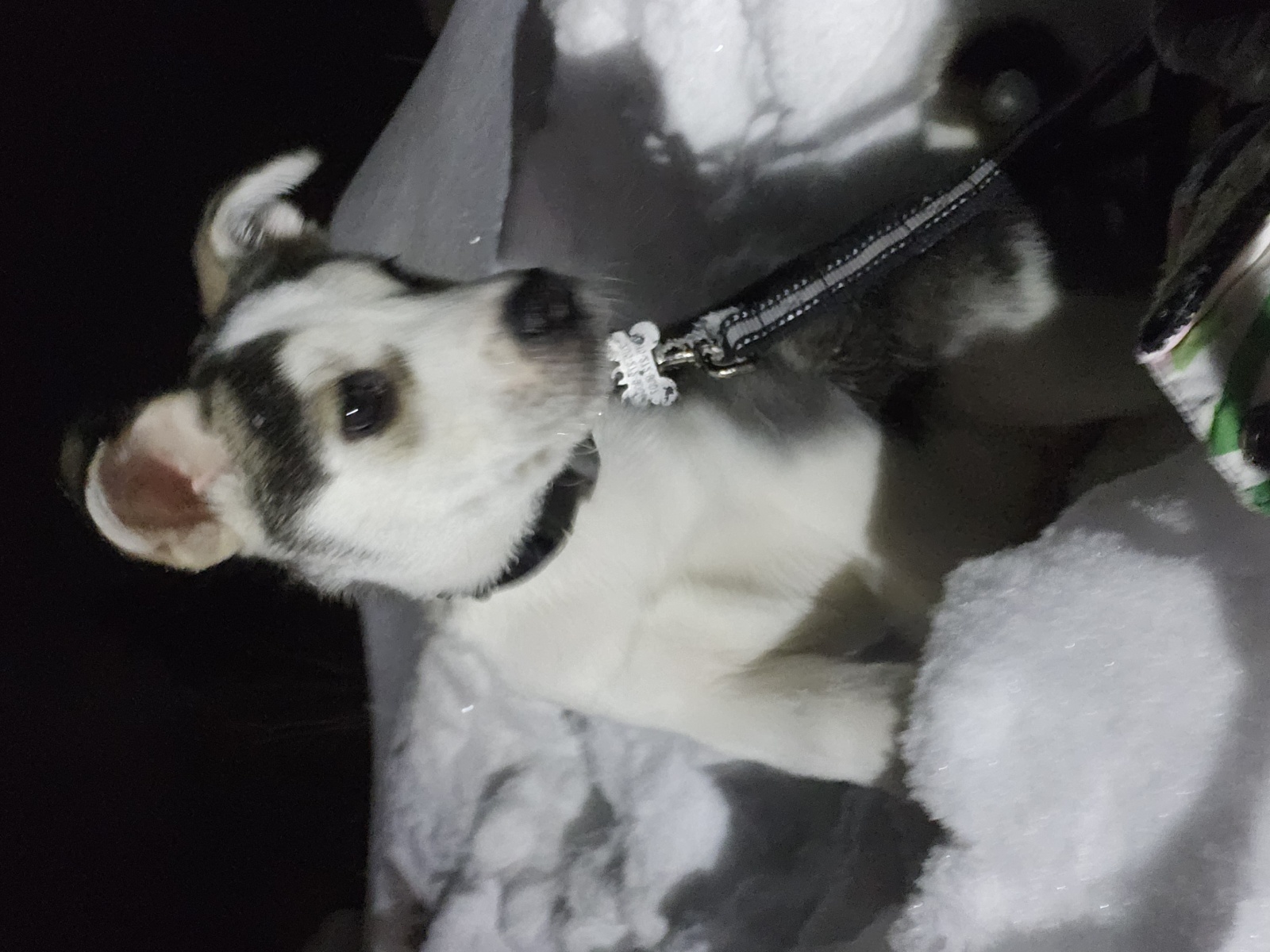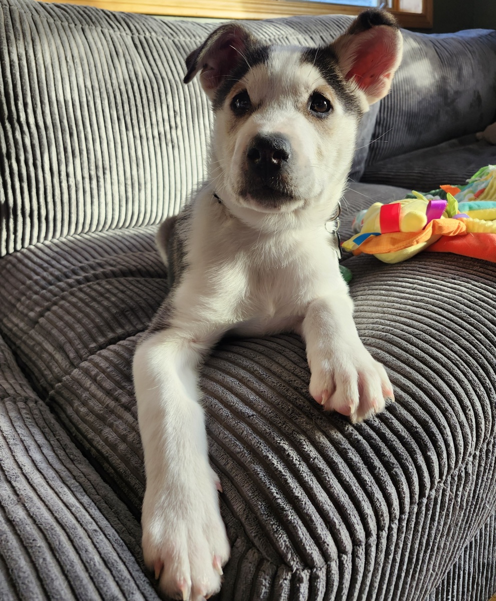 Timber is very friendly. Loves other dogs and cats. He is well loved. He belongs to Line and Charlie Dumont. His left ear was frostbitten at birth and he is missing the tip of his ear. Mom works at Cochrane Foot Care Wellness Centre, the number there is 705-272-2273.